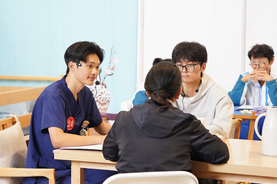 在这一我国规格最高、项目最多、规模最大、水平最高、影响最广的综合性职业技能赛事中,健康和社会照护赛项对标世界技能大赛,采取单人比赛形式,参赛选手需根据案例描述和相关材料,利用现有资源,并由标准化病人配合,完成涵盖医院、家庭、日间与长期照护的四大模块、6个典型案例考核。每一案例均设置95分钟的考核任务,包括20分钟计划、30分钟实践与45分钟海报或反思报告,以此全面考察选手的综合素养和能力。