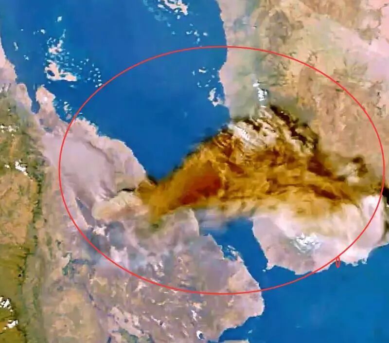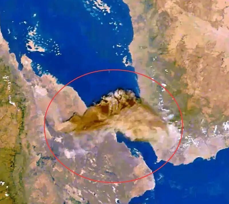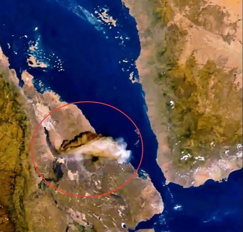 海利古比火山位于埃塞俄比亚东北部,在沉睡了1.2万年后,于11月23日中午突然剧烈喷发。美国航天局卫星图片表明,火山喷发产生的浓烟尘冲上天际,不仅覆盖了埃塞俄比亚以东的红海水域,还飘向也门、阿曼乃至巴基斯坦和印度等国。