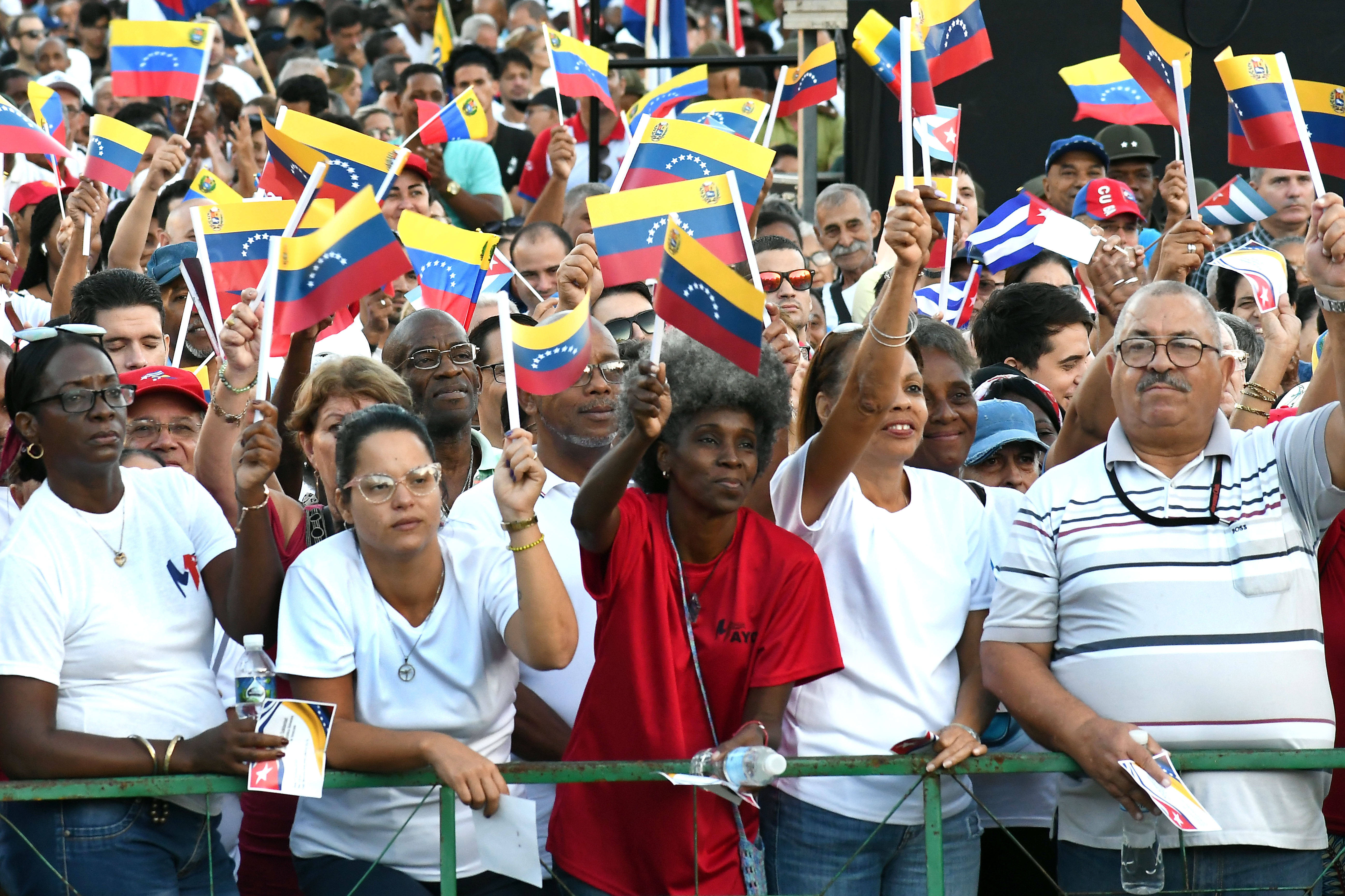 10月17日,在古巴首都哈瓦那,古巴民众挥舞旗帜参加集会,抗议美国军事威胁委内瑞拉,表达对委内瑞拉人民和政府的坚定支持。新华社发(华金·埃尔南德斯摄)参联会主席和防长相继现身